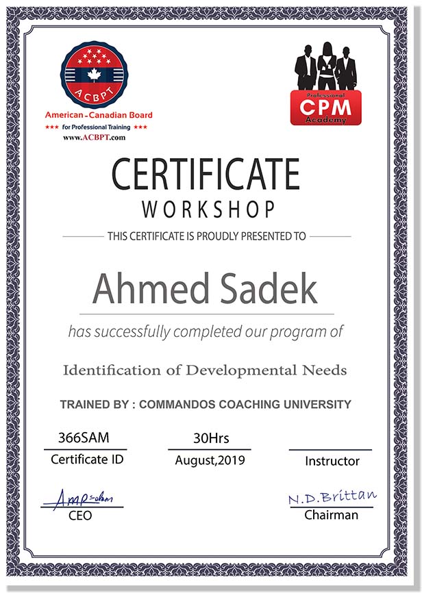 • Certificate of attendance and workshops • Professional training program certificate • Professional training Diploma certificate • Mini Master’s Degree